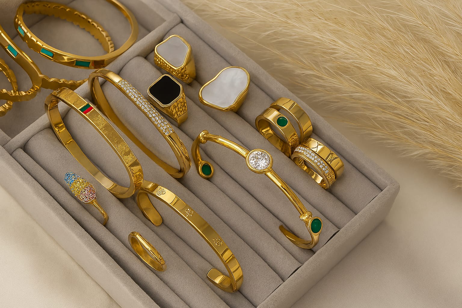 Yes, our premium collection features high-quality gold-plated artificial jewellery that looks and feels like real gold.
